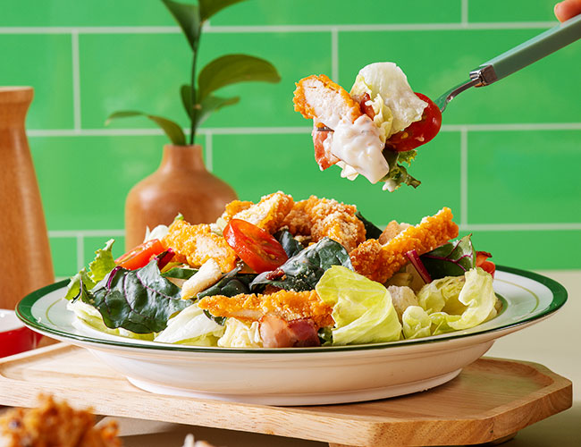 매콤한 케이준 치킨과 고소한 시저 드레싱이